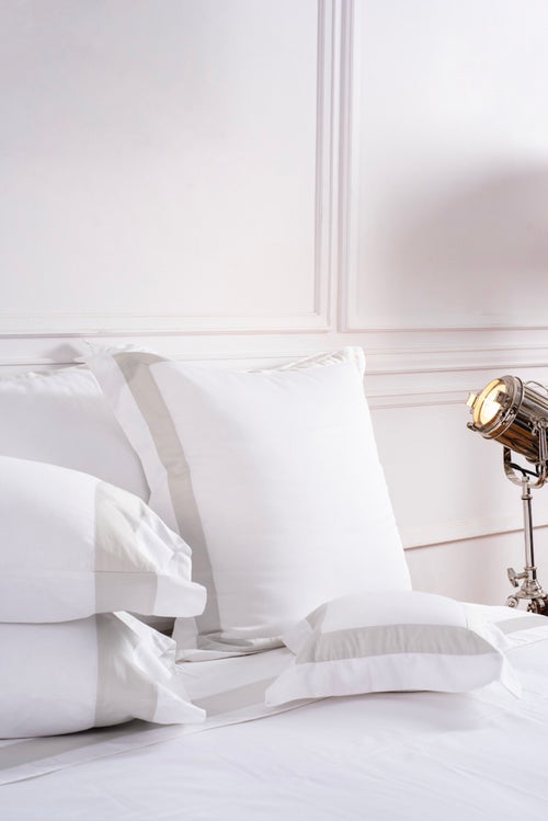 Crafted from organic cotton Egyptian sateen, the Capri Silver Pillowcases features a silver double oxford cut ruffle style on solid base of white 300 thread count Egyptian cotton. Enjoy a silky soft hand and fluid drape while adding a touch of elegant design to your bedding.